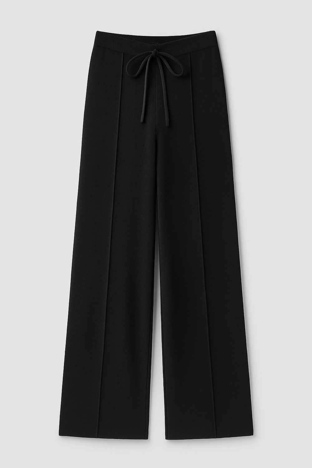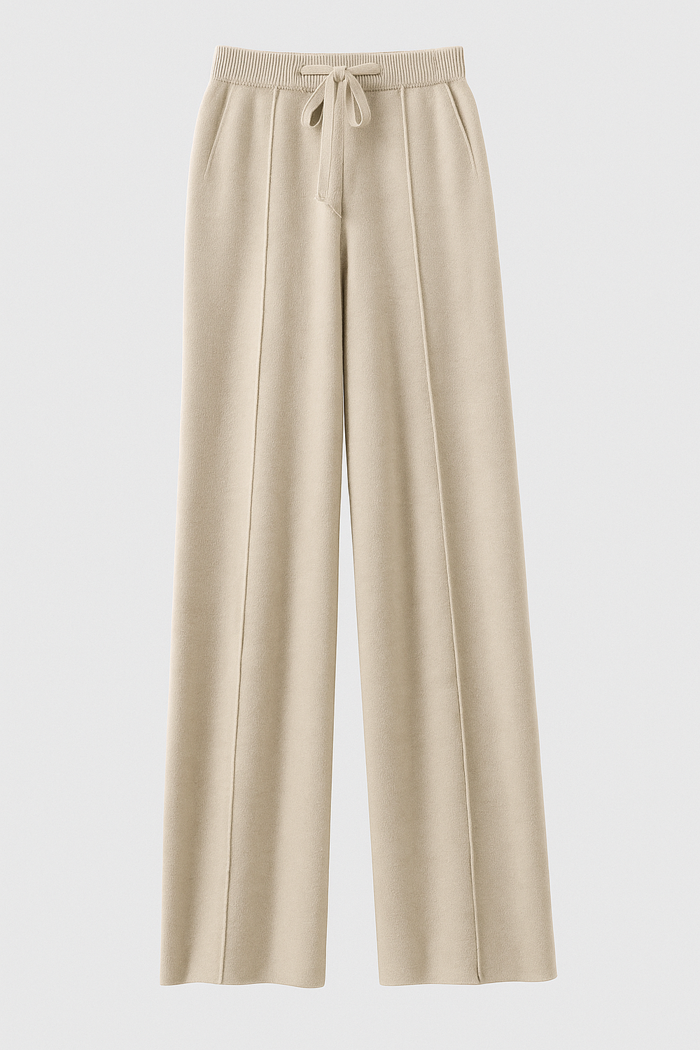 Tyget har en lätt tyngd som gör att byxorna faller vackert mot kroppen och ger den där lugna, lyxiga känslan som definierar The Cozy Season.